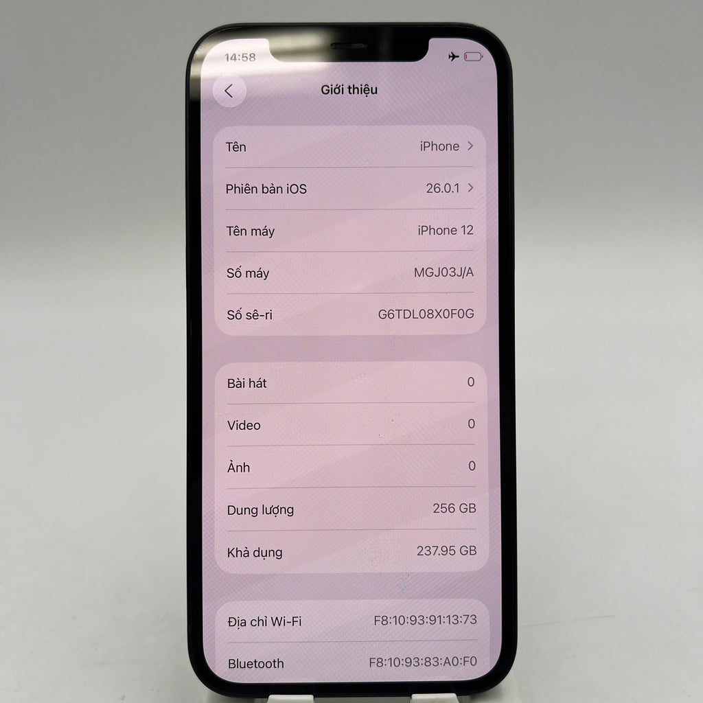 iPhone 12 256GB Đen 98% pin 100% Máy đã trả hết tiền mạng dùng như Quốc tế Apple (Đã thay pin, màn xước, viền xước, viền cam xước) - HH2216