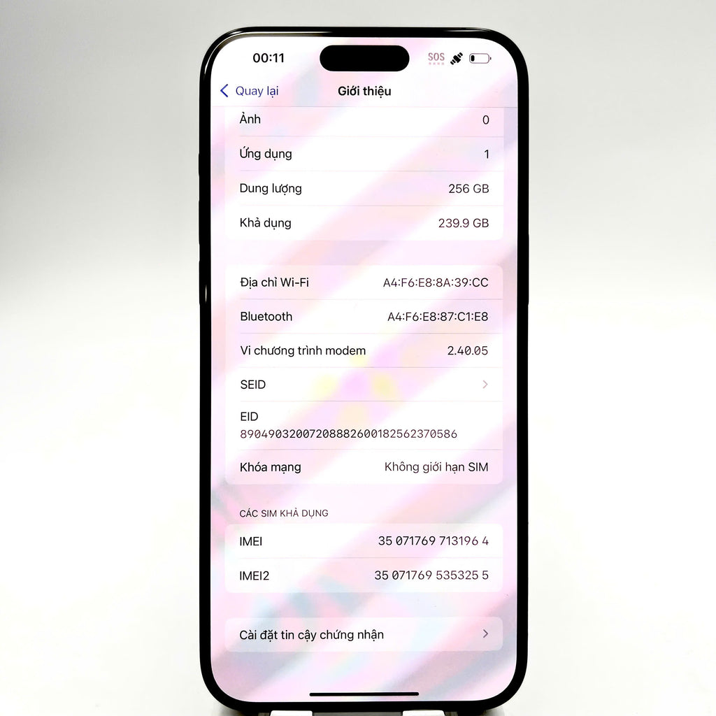 iPhone 15 Pro Max 256GB Đen 98% pin 85% Quốc tế từ SB (Không dùng sim SB) - HH1964