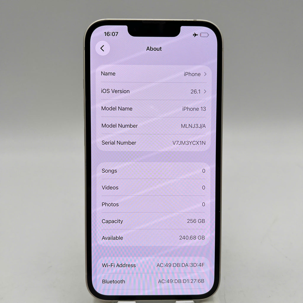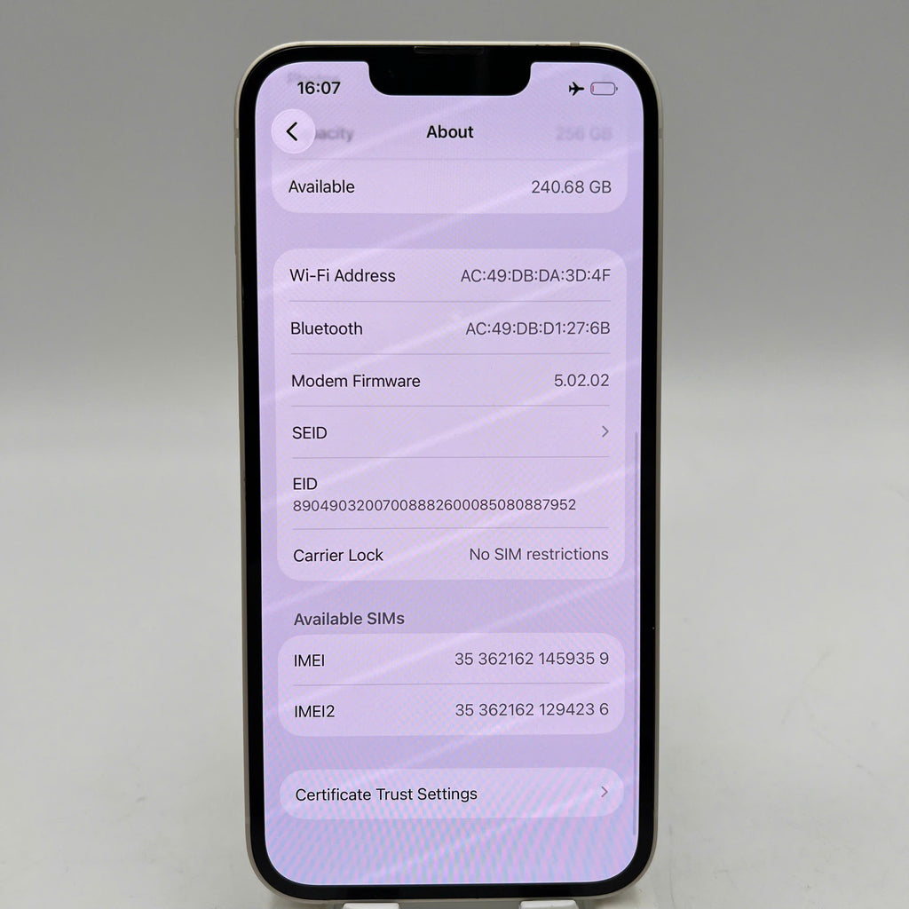 iPhone 13 256GB Trắng 98% pin 100% Quốc tế từ SB (Không dùng sim SB - Đã thay pin, màn xước, viền xước) - HH9359