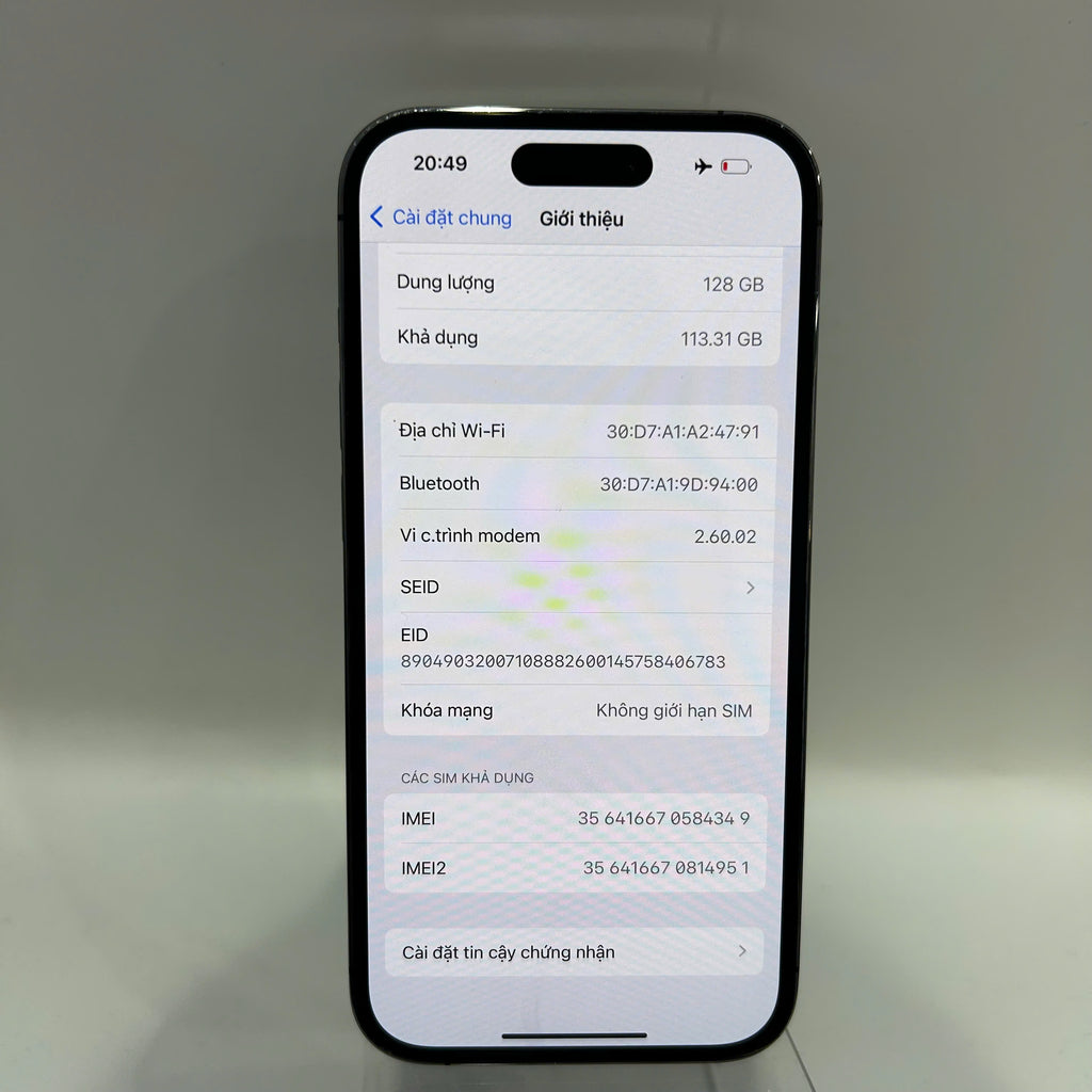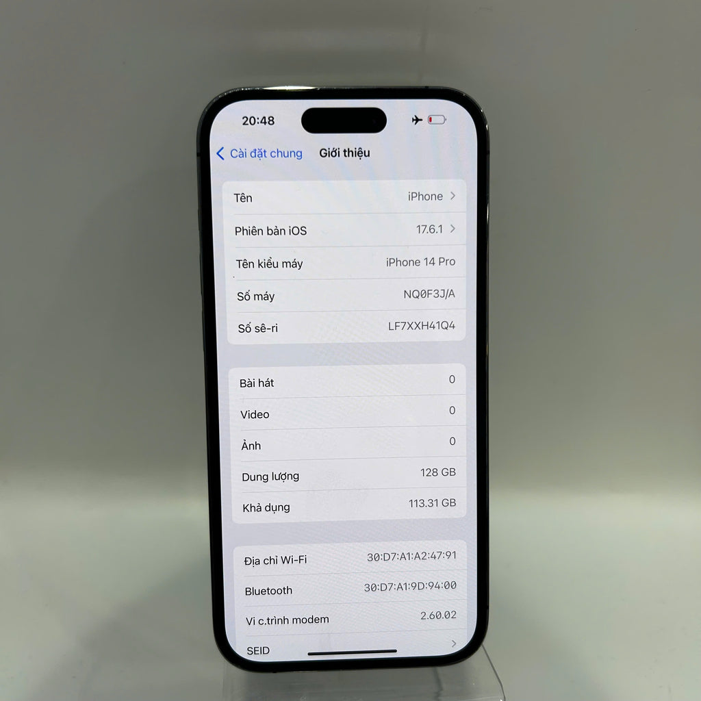 iPhone 14 Pro 128GB Tím 98% pin 90% ĐBH Máy đã trả hết tiền mạng dùng như Quốc tế Apple (xước sơn viền) - HH4349