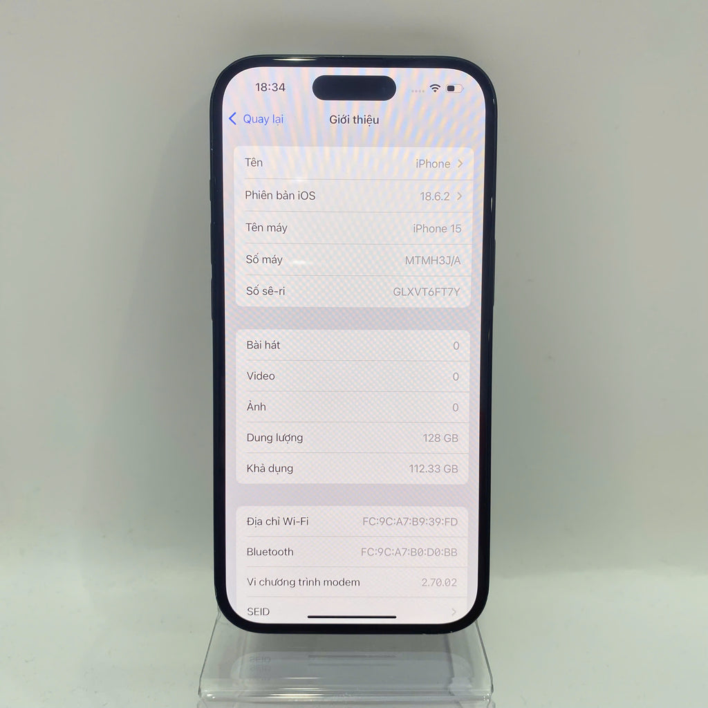 iPhone 15 128GB Đen 97% pin 86% Quốc tế từ SB (Không dùng sim SB - xước viền và màn) - HH2832