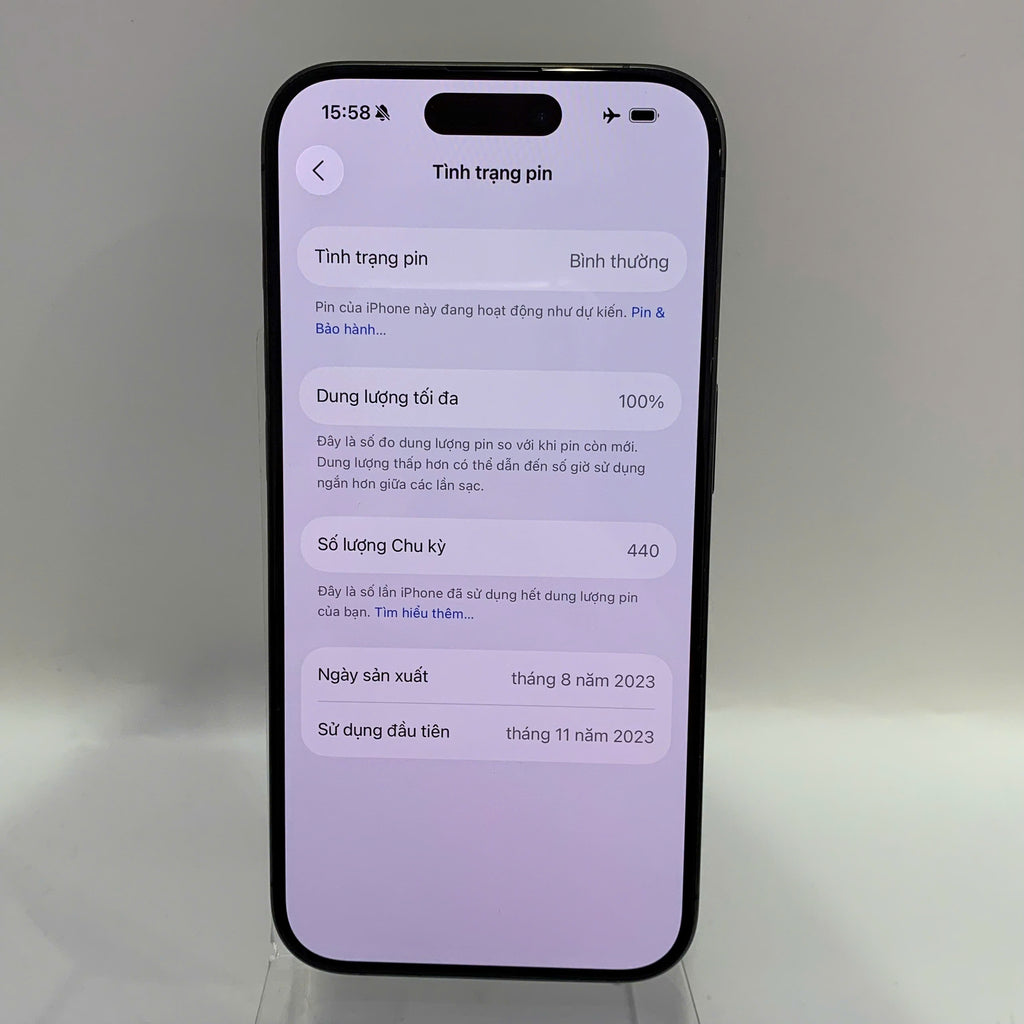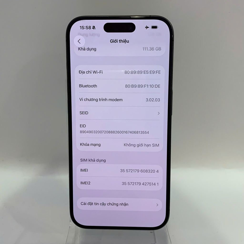 iPhone 15 Pro 128GB Đen 98% pin 100% Quốc Tế Apple (ám mặt lưng,xước sơn viền,ĐTP) - HH3204
