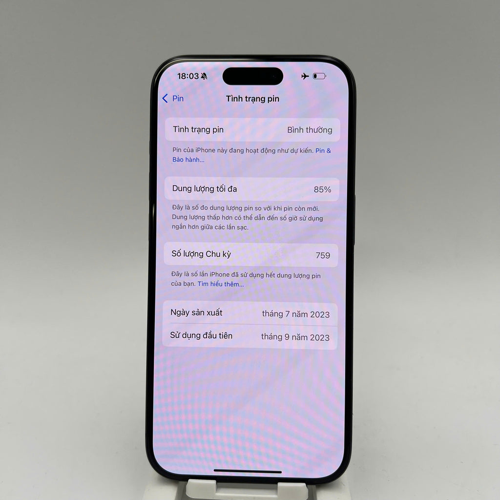 iPhone 15 Pro 256GB Xanh Dương 98% pin 85% Quốc Tế Apple (xước viền, đốm 0.5x/3x) - HH4816