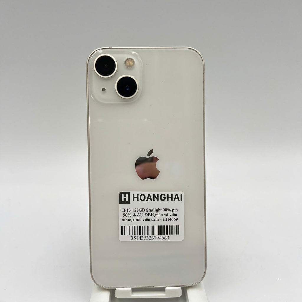 iPhone 13 128GB Trắng 98% pin 90% ĐBH Quốc tế từ AU (Không dùng sim AU - màn và viền xước, xước viền cam) - HH4669