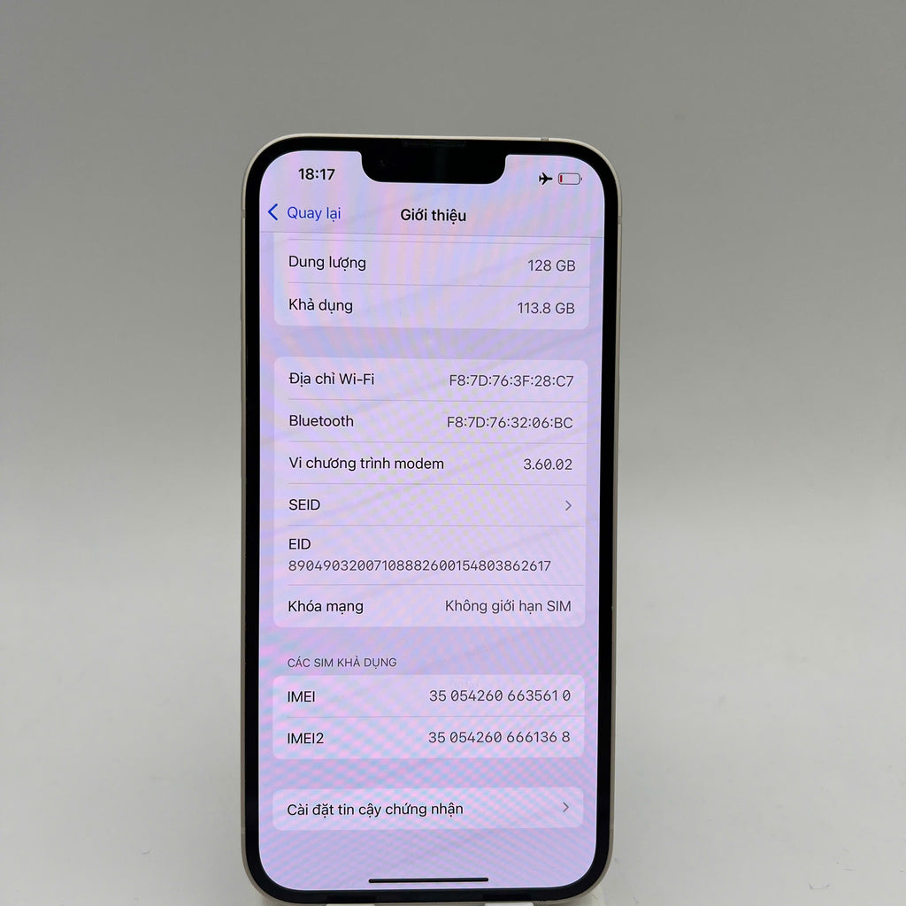 iPhone 14 128GB Trắng 98% pin 87% Quốc tế Apple - HH5610