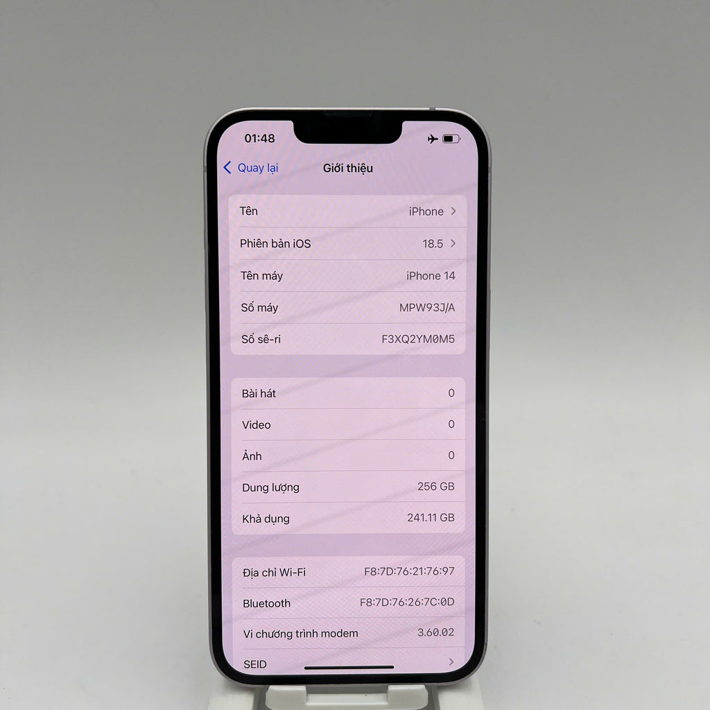 iPhone 14 256GB Tím 98% pin 88% Máy đã trả hết tiền mạng dùng như Quốc tế Apple (màn và viền xước) - HH8115