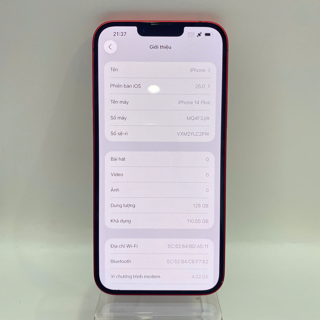 iPhone 14 Plus 128GB Đỏ 98% pin 100% Quốc tế từ DCM (Không dùng sim DCM - sứt viền, ĐTP) - HH7261