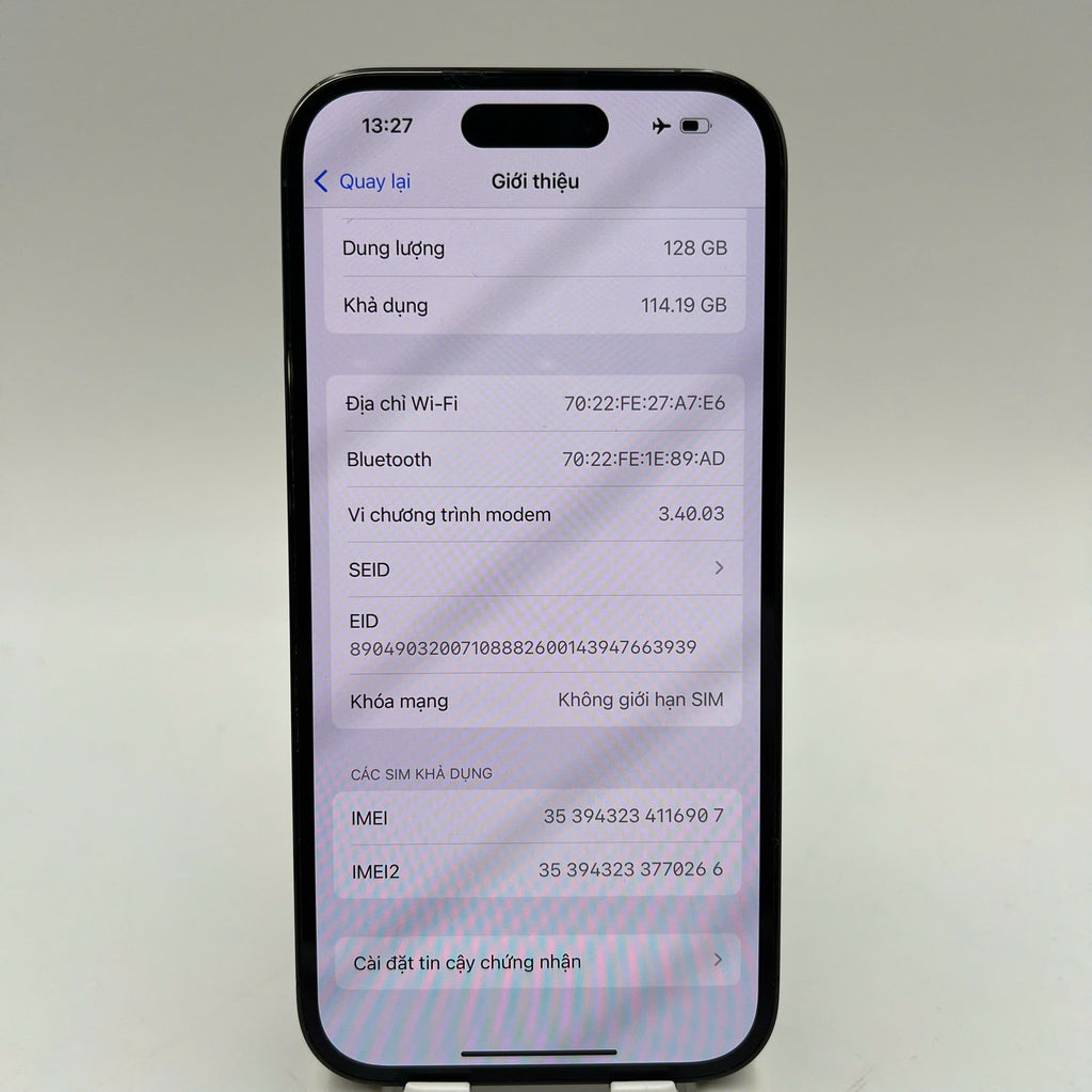 iPhone 14 Pro 128GB Đen 98% pin 88% Quốc tế từ SB (Không dùng sim SB - màn xước) - HH6907