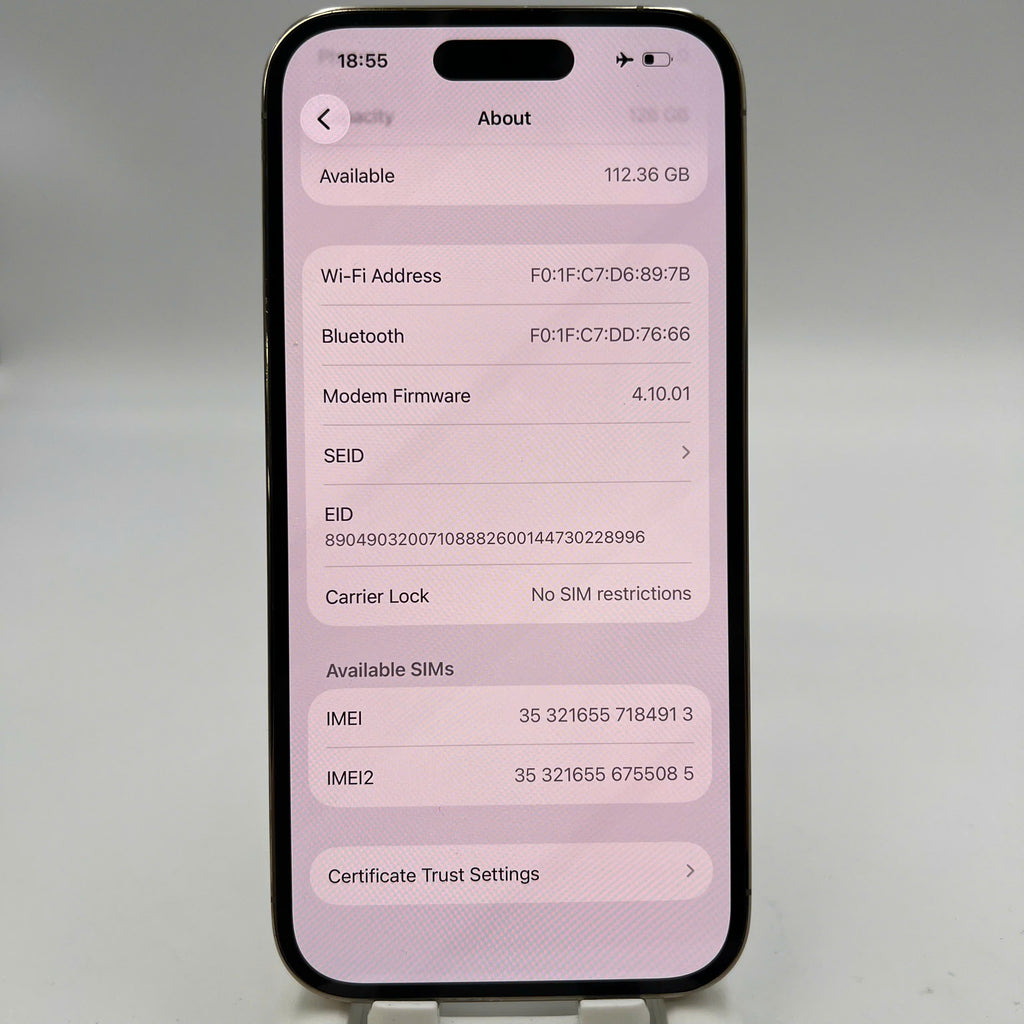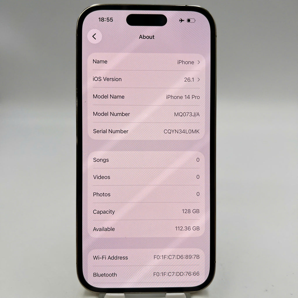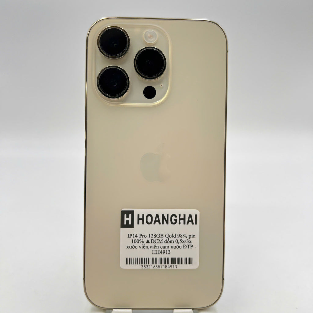 iPhone 14 Pro 128GB Vàng 98% pin 100% Quốc tế từ DCM (Không dùng sim DCM - Đã thay pin, đốm 0.5x/3x, xước viền, viền cam xước) - HH4913