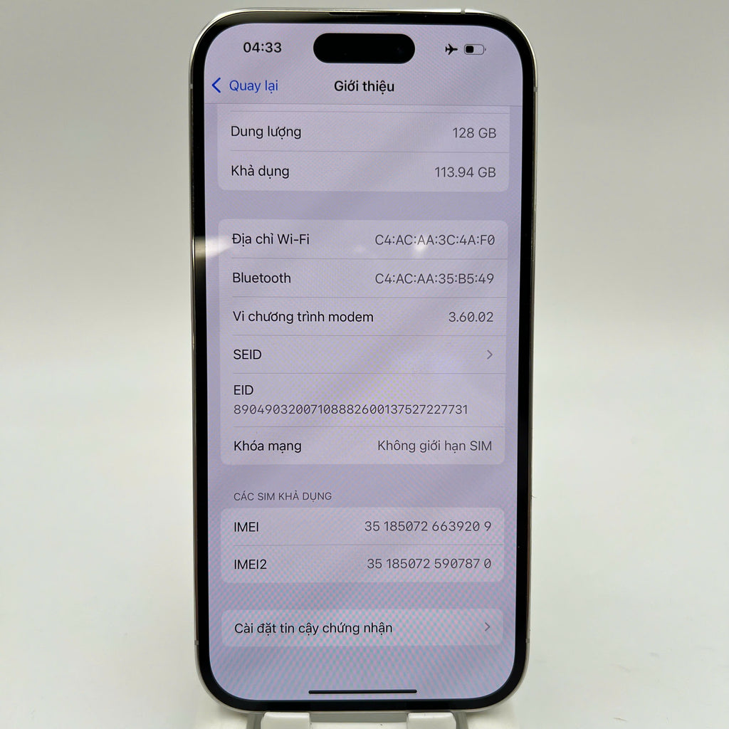 iPhone 14 Pro 256GB Trắng 98% pin 85% Quốc tế từ DCM (Không dùng sim DCM - đốm 3x) - HH9209