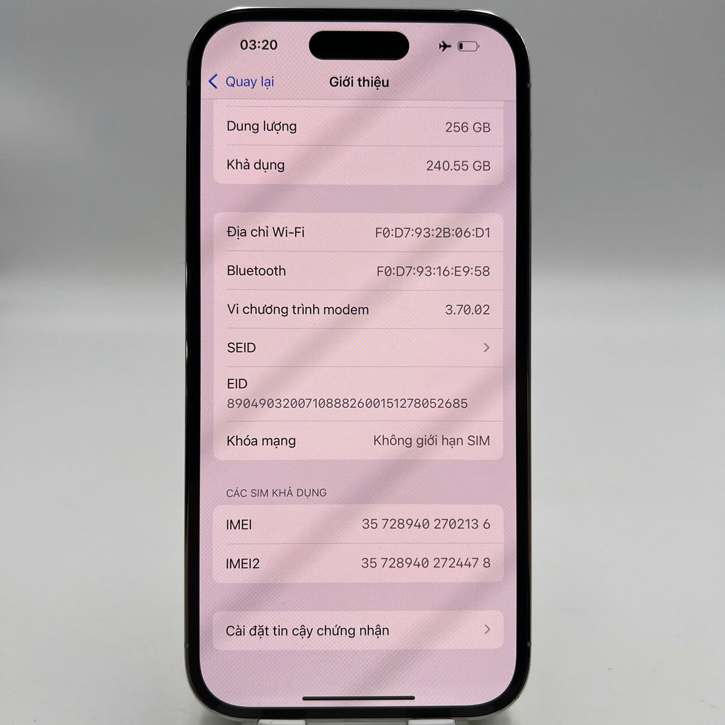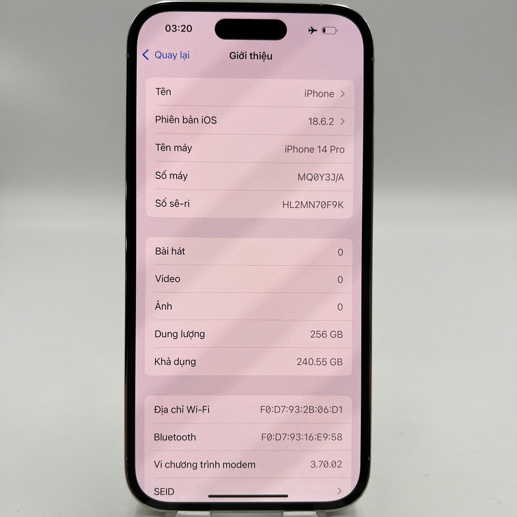 iPhone 14 Pro 256GB Trắng 98% pin 87% Quốc Tế Apple (đốm 3x, xước viền) - HH2136