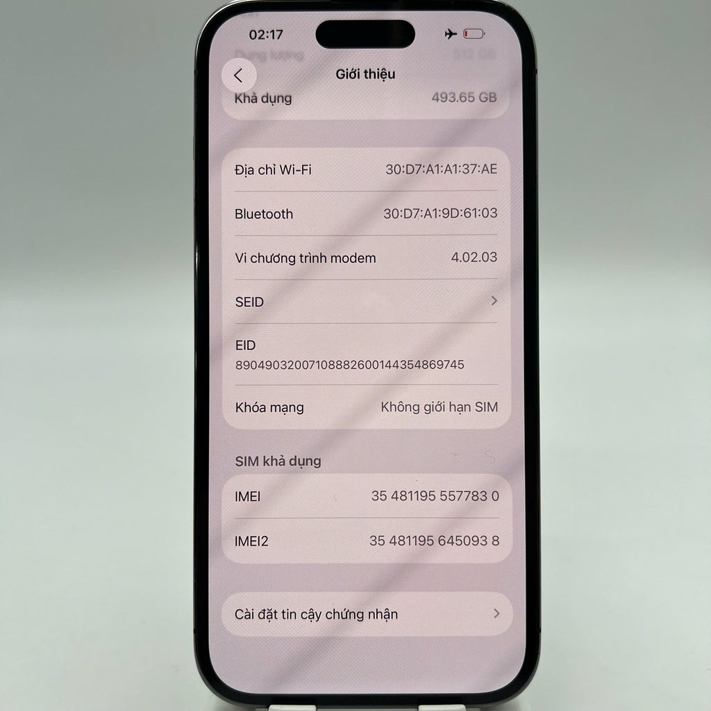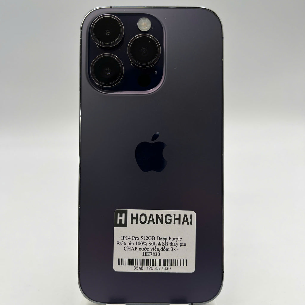 iPhone 14 Pro 512GB Tím 98% pin 100% Quốc tế từ SB (Không dùng sim SB - thay pin CHAP, xước viền, đốm 3x, SOL) - HH7830