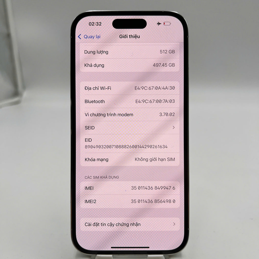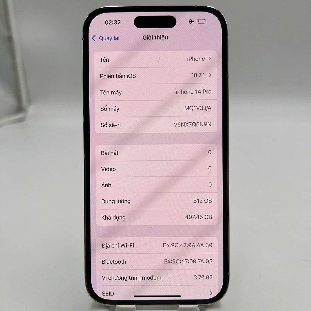 iPhone 14 Pro 512GB Trắng 98% pin 86% Máy đã trả hết tiền mạng dùng như Quốc tế Apple (đốm 3x,chân sạc xước nhẹ) - HH9476