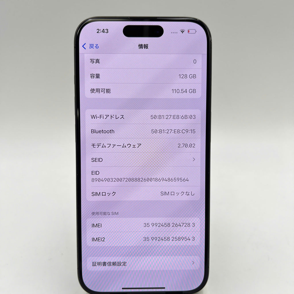 iPhone 15 Pro 128GB Đen 98% pin 88% Quốc tế từ SB (Không dùng sim SB - đốm 0,5x, viền xước, màn xước) - HH7283