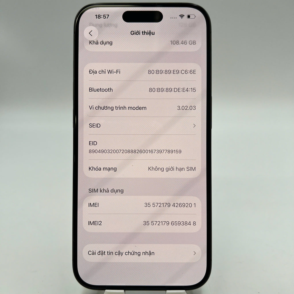 iPhone 15 Pro 128GB Đen 98% pin 89% Quốc Tế Apple - HH9201