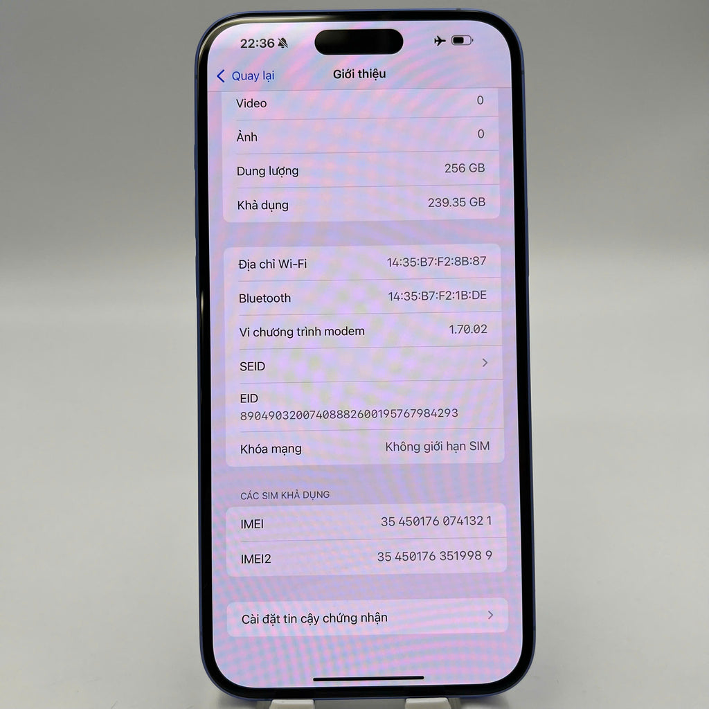 iPhone 16 Plus 256GB Xanh Dương 98% pin 99% Quốc Tế Apple (xước viền) - HH1321