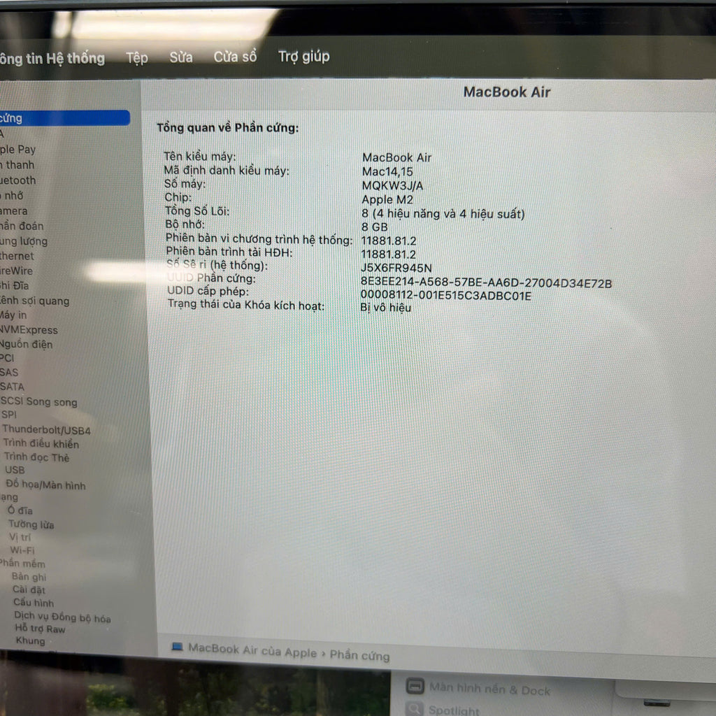 Macbook Air 2023 15in Đen Apple M2/ RAM 8GB/ SSD 256GB 98% sạc 11 lần BPTN