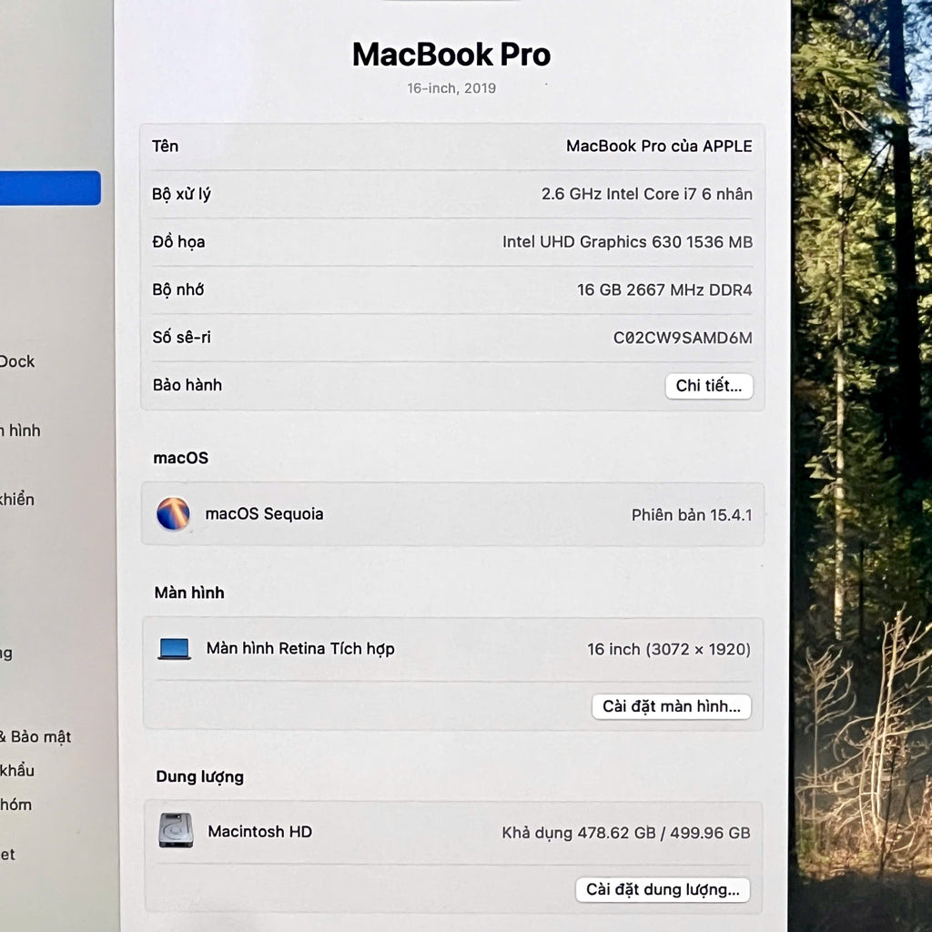 Macbook Pro 2019 16in Xám Intel Core i7/ RAM 16GB/ SSD 512GB 98% Sạc 32 lần BPTN