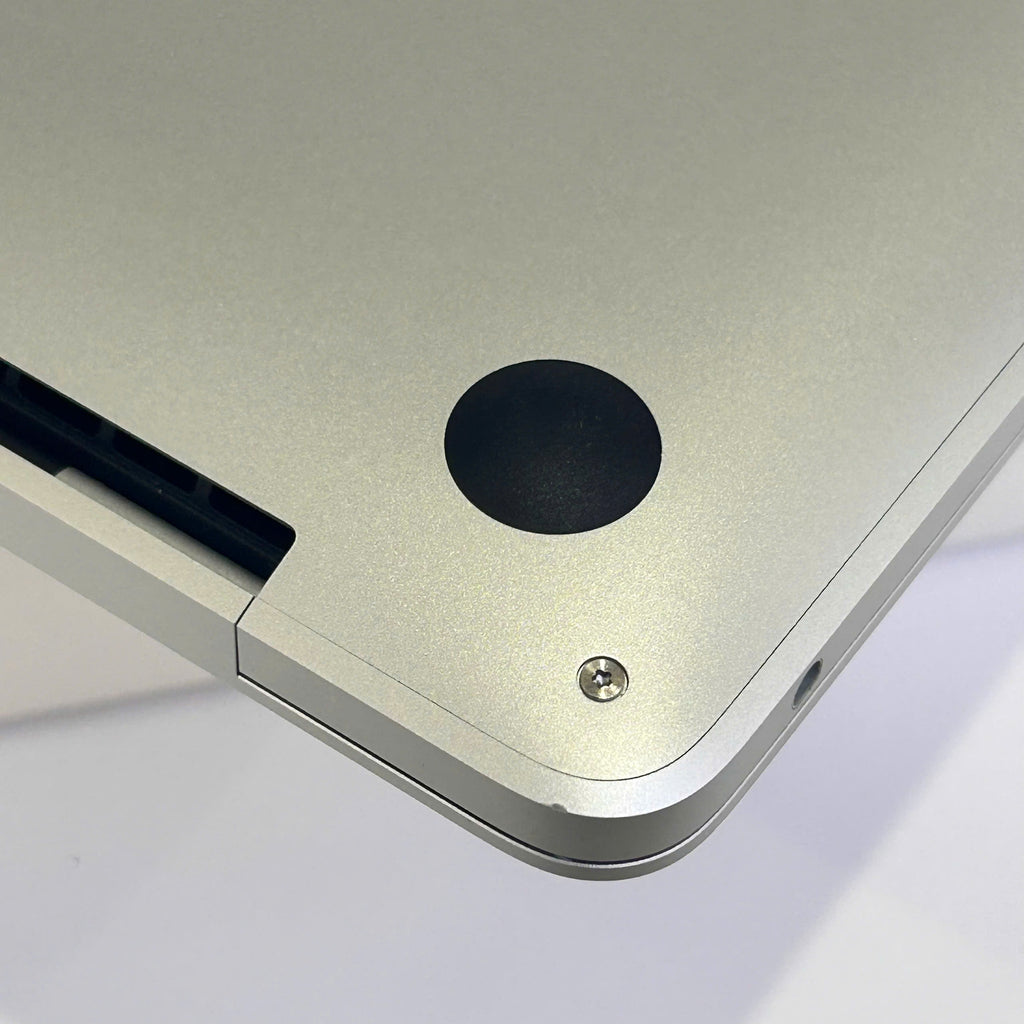 Ấn tượng trong thiết kế của Apple luôn là logo táo khuyết được đặt chính giữa mặt lưng, tạo nên sự nhận diện thương hiệu mà ai ai cũng phải ngước nhìn mỗi khi mình cầm trên tay hay làm việc ngoài quán cà phê. Khối lượng máy chỉ 1.4 kg và mỏng 15.6 mm đem đến sự cơ động, dễ dàng bỏ vào balo để mang theo bên mình.