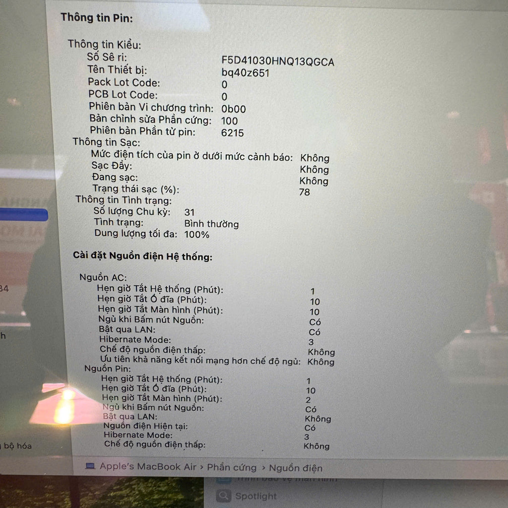 Độ phân giảiLiquid Retina (2560 x 1664)cùng chiếc màn hình13.6 inchviền mỏng đắm chìm bạn vào không gian giải trí sống động trên từng khung hình, lý tưởng hóa mọi nội dung hiển thị từ học tập, làm việc cơ bản đến xem phim, thiết kế,... Độ sáng500 nitshiển thị màu sắc rực rỡ ngay cả khi sử dụng laptop trong môi trường ánh sáng mạnh.