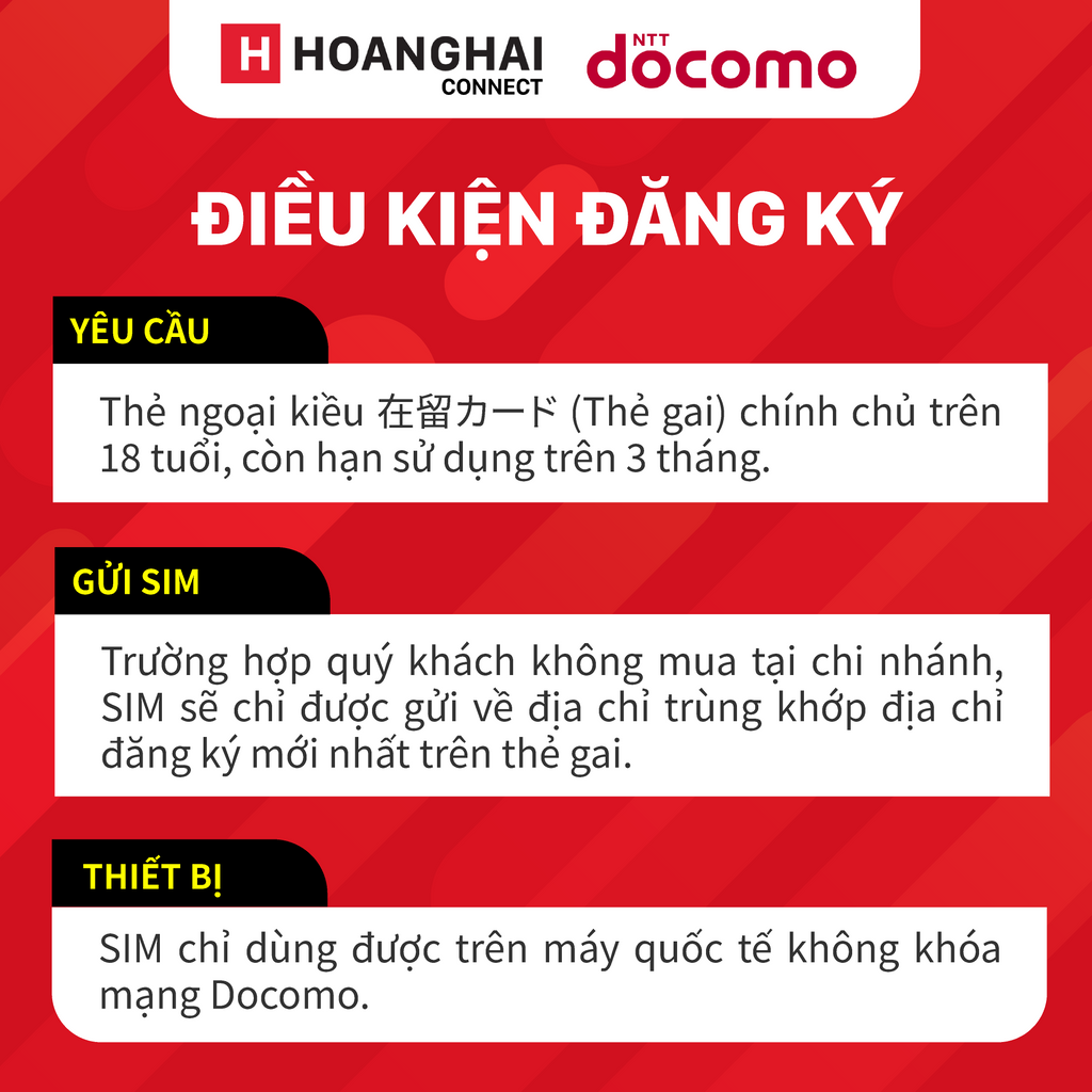 • Yêu cầu thẻ 在留カード (Gai) chính chủ trên 18 tuổi, còn hạn sử dụng trên 3 tháng.
