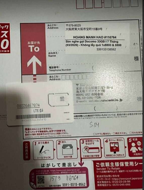 • SIM nhận được tin nhắn SMS, tiện lợi cho việc xác nhận mã OTP hoặc thông tin từ nhà mạng. (Một số APP chuyên biệt có thể không đăng ký được ví dụ như Merukari, Paypay,...)