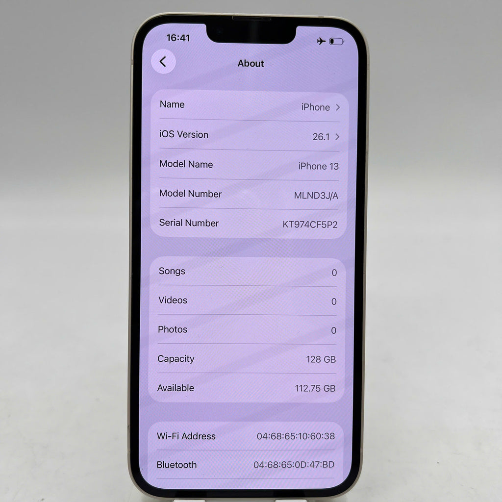iPhone 13 128GB အဖြူရောင် 98% ဘက်ထရီ 100% နိုင်ငံတကာ DCM (DCM ဆင်းမ်မရှိပါ - ဘက်ထရီ အစားထိုး) - HH1400