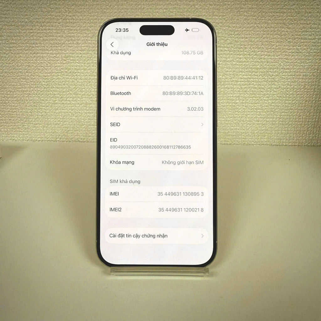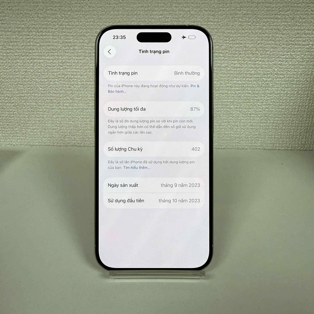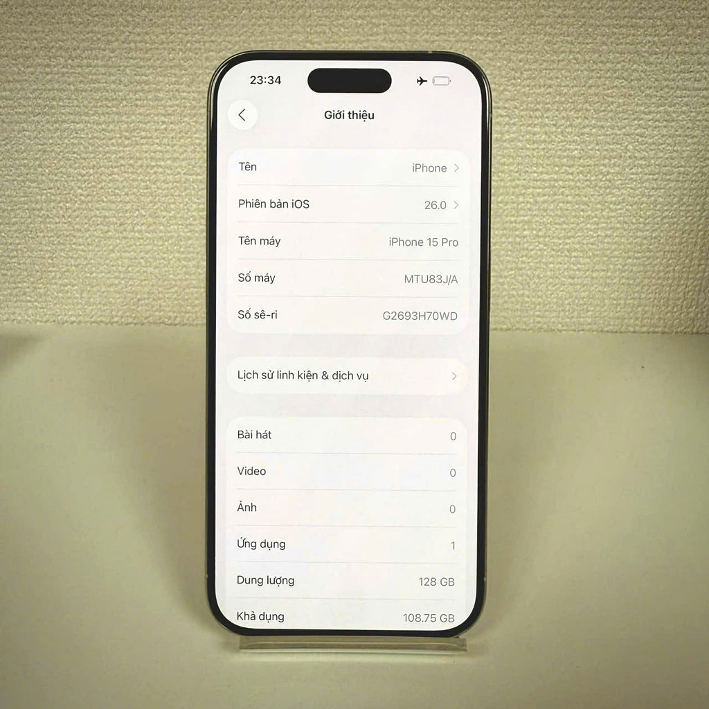 iPhone 15 Pro 128GB အဖြူရောင် 98% ဘက္ထရီ 87% Apple International (LKCH ကင်မရာ၊ ခြစ်ရာများ၊ ကျောညိုရောင်) - HH8953